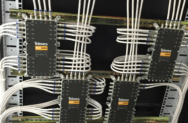Distributes television signals from one central source to multiple units.